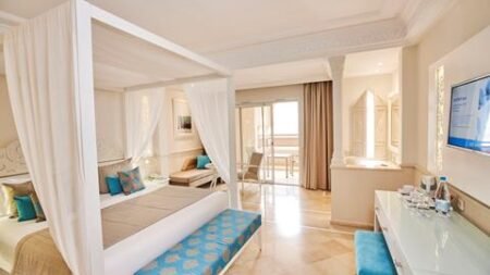 De vijf (!) sterren van TUI BLUE Palm Beach Palace schitteren je tegemoet. Dit is Moorse charme ten top. Het zandstrand oogt exotisch, de couscous is perfect gekruid en de yogales dé definitie van ontspanning. Hier weten ze wat het geheim is van een relaxte vakantie met z’n twee. Luieren op een Balinees bed met dikke kussens, een luxe kamer met minibar en samen de dag afsluiten met een shisha. En natuurlijk alles All Inclusive. Even nergens aan denken, behalve aan elkaar.