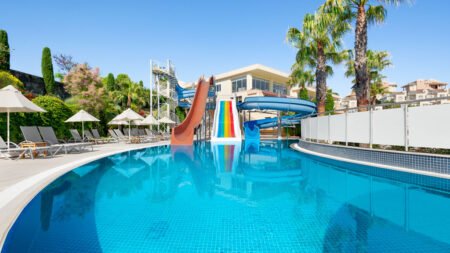 Zomer Wanneer je tussen 29-03-2026 en 31-10-2026 in deze accommodatie verblijft, is onderstaande informatie van toepassing. * Ligging * Gelegen op een heuvel * Openbaar strand op circa 10 kilometer * Soke op circa 7 kilometer * Kusadasi op circa 15 kilometer * Shuttleservice naar het strand gratis * Bushalte op circa 1,5 kilometer * Algemeen & faciliteiten * 46 gebouwen * Maximaal 4 verdiepingen * 414 kamers * Receptie * 24 uur per dag * Lobby * 2 liften * Bagageruimte * Wifi in alle openbare ruimtes gratis * Meerdere winkels * Minimarkt * Wasservice tegen betaling * Doktersservice tegen betaling * Tuin * Privé parkeergelegenheid gratis * Restaurants & bars * Buffetrestaurant * À-la-carterestaurant * 5 drinkgelegenheden * 5 bars * Activiteiten & ontspanning * Aerobics gratis * Basketbal gratis * Biljart gratis * Boccia gratis * Darts gratis * Fitness gratis * Midgetgolf gratis * Tafeltennis gratis * Tafelvoetbal tegen betaling * Tennis gratis * Voetbal gratis * Volleybal gratis * Spa Center gratis toegang * Binnenzwembad * Sauna * Hamam * Massages tegen betaling * Schoonheidsbehandelingen tegen betaling * Gameroom * Animatie * Shows * Zwembaden * 10 buitenzwembaden * 2 van deze zwembaden hebben minimaal één glijbaan * 3 buitenzwembaden voor kinderen * Eén van deze zwembaden heeft een glijbaan * Zonneterras * Ligbedden met matrasjes gratis * Parasol gratis * Badhanddoekenservice gratis * Kinderfaciliteiten * Mini club (4-12 jaar) * Minidisco * Buitenspeeltuin * Verzorging * All Inclusive * Ontbijt in buffetvorm (07.00-10.00 uur) * Laat ontbijt in buffetvorm (10.00-10.30 uur) * Lunch in buffetvorm (12.30-14.30 uur) * Diner in buffetvorm (19.00-21.00 uur) * Snacks (12.30-16.00 uur) * Koffie, thee & koekjes (17.00-18.00 uur) * IJs (16.00-18.00 uur) * Middernachtsnack (23.00-01.00 uur) * Selectie lokale (non-)alcoholische drankjes (10.00-02.00 uur) * Tegen betaling: dineren in het à-la-carterestaurant, import drankjes en verse vruchtensappenHotelkamers * Junior suite Standaard JZ * Suite Standaard (Classic) UZ * Suite Superior US * Suite Duplex Superior UF1 * Suite Duplex Superior UF2