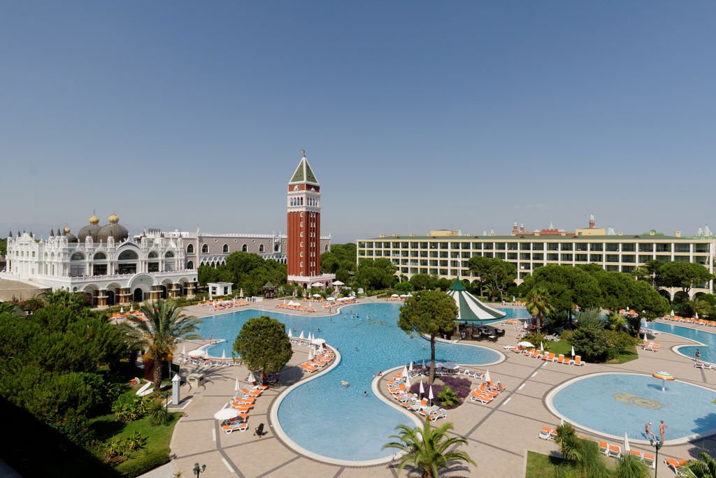 Ligging: Venezia Palace ligt direct aan het strand en op ongeveer 20 kilometer centrum van Antalya. Het openbaar vervoer treft u op loopafstand. Faciliteiten: Venezia Palace telt 543 kamers verdeeld over een hoofdgebouw en diverse bijgebouwen. In het hoofdgebouw treft u de prachtige lobby met zitjes, de receptie en liften. In het buffetrestaurant kunt u terecht voor al uw maaltijden. Tevens zijn er diverse à-la-carterestaurants waar u heerlijk kunt dineren (tegen betaling en vooraf reserveren). Bij de diverse bars kunt u terecht voor een drankje of een snack. In de prachtige groene tuin vindt u het grote zwembad, een kinderbad en een zwembad met glijbanen (op bepaalde tijden geopend). Rondom de zwembaden en op het strand staan de ligbedden en parasols voor u klaar. U kunt gratis gebruikmaken van de badhanddoekenservice. Tevens biedt Venezia Palace u roomservice, een kapsalon, een wasservice, een babysitservice (op aanvraag), diverse winkeltjes en een doktersservice (alle tegen betaling). In de openbare ruimtes kunt u gratis gebruikmaken van wifi. Voor de kinderen is er een miniclub (4-12 jaar), een minidisco en een speeltuintje. Uw hotelkamer: Uw standaardkamer (max. 2 volw. + 2 kind.) in Venezia Palace is netjes en comfortabel ingericht en beschikken over airconditioning, satelliet televisie, kluisje (gratis), minibar, gratis wifi, telefoon en een balkon met zitje. De badkamer is voorzien van een bad/douche, toilet en föhn. De kindvriendelijke kamers zijn gelijk aan de standaardkamers De voordeelkamer (2-3 personen) kan qua faciliteiten, grootte en ligging afwijken van de standaardkamer. De superiorkamers beschikken over dezelfde faciliteiten als de standaardkamer alleen zijn de kamers ruimer. Voor gezinnen zijn er familiekamers (3-4 personen), deze bestaan uit 2 ruimtes. U kunt ook kiezen voor een familiekamer superior (5 personen), deze zijn gelijk aan de familiekamer echter ruimer. Tegen een toeslag kunt u een standaardkamer of familiekamer met zijzeezicht boeken. Sport & Ontspanning: Tijdens uw vakantie kunt u diverse sportieve activiteiten uitoefenen, zoals tennis (verlichting en lessen tegen betaling), fitness, aerobics, tafeltennis, basketbal, voetbal, darts en steps. Watersporten aan het strand zijn tegen betaling. U kunt heerlijk ontspannen in het Spa Center, waar u gratis gebruik kunt maken van de sauna en het Turks bad. Massages en behandelingen zijn tegen betaling. Het animatieteam verzorgt een leuk dag- en avondprogramma. Verzorging Zomer: U verblijft in Venezia Palace op basis van Ultra All Inclusive: Ontbijt (08.00-10.30 uur), laat ontbijt (10.30-11.00 uur), lunch (12.30-14.30 uur) en diner (19.00-21.30 uur), alle in buffetvorm. Diverse snacks (12.00-16.00), koekjes en ijs (12.00-23.00) en middernachtsnack (23.00-08.00). Tijdens uw verblijf kunt u 1 maal dineren in het Turks à-la-carterestaurant (vooraf reserveren). Alle door het hotel geselecteerde lokale alcoholische en alcoholvrije drankjes en een aantal import drankjes zijn 24 uur per dag inbegrepen. Tegen betaling: roomservice, de overige 3 à-la-carterestaurants (vooraf reserveren), cocktails, Narghile, import drankjes en (fris)drank in flessen. LET OP: In het voor/naseizoen en eventueel tijdens de winter periode (1 november t/m +/- 31 maart) kan het voorkomen dat bepaalde faciliteiten niet beschikbaar zijn i.v.m. onderhoud, bezetting of weersomstandigheden. Zo zijn veelal de buitenfaciliteiten niet beschikbaar, de buitenzwembaden buiten gebruik en geen of beperkte animatie aanwezig. Ook kan het voorkomen dat een accommodatieverschaffer vergoeding kan vragen voor bepaalde faciliteiten of diensten en dat de verzorging iets beperkter kan zijn. Het kan voorkomen dat een deel van het accommodatie complex tijdelijk niet in gebruik is vanwege onderhoud of lage bezetting.