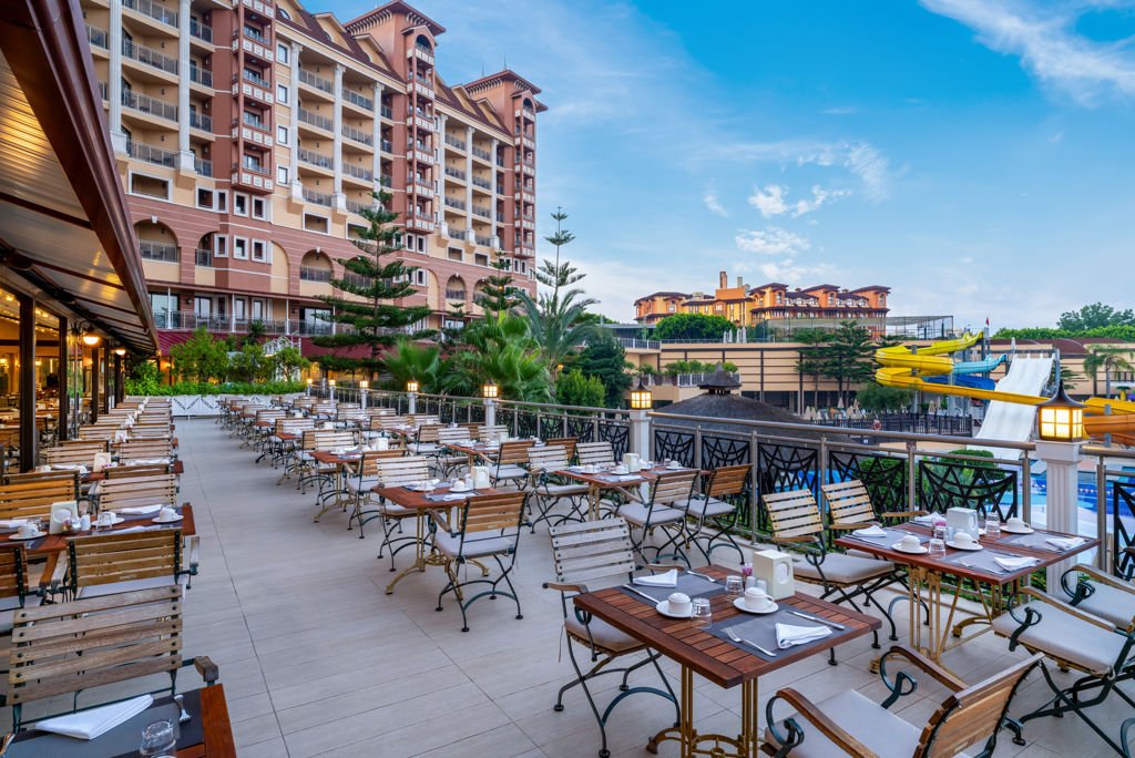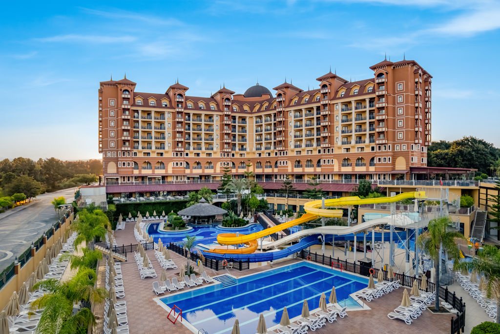 Winter Wanneer je tussen 01-11-2025 en 31-03-2026 in deze accommodatie verblijft, is onderstaande informatie van toepassing. * Ligging * In het centrum van Kumkoy * Privéstrand op circa 250 meter * Zandstrand * Ligbedden * Parasol * Dichtstbijzijnde winkel op circa 300 meter * Dichtstbijzijnde restaurant op circa 300 meter * Dichtstbijzijnde bar op circa 300 meter * Side op circa 5 kilometer * Manavgat op circa 12 kilometer * Bushalte op circa 50 meter * Algemeen & faciliteiten * 1 gebouw * Maximaal 10 verdiepingen * 334 kamers * Receptie * 24 uur per dag * Lobby * 3 liften * Bagageruimte * Wifi in alle openbare ruimtes * Meerdere winkels * Minimarkt * Wasservice tegen betaling * Doktersservice tegen betaling * Tuin * Privé parkeergelegenheid * Restaurants & bars * Buffetrestaurant * 3 à-la-carterestaurants (vooraf reserveren) tegen bijbetaling * Italiaans restaurant * Turks restaurant * Visrestaurant * Restaurant * Restaurant met verschillende specialiteiten * Gesloten in het winterseizoen * 5 drinkgelegenheden * 2 bars * 2 beachbars * Lobbybar * Activiteiten & ontspanning * Basketbal * Beachvolleybal * tussen ca. april en oktober * Biljart tegen betaling * Boccia * Darts * Fitness * Midgetgolf * Tafeltennis * Tennis * Voetbal * Volleybal * Watersporten tegen betaling * Spa Center * Sauna * Hamam behandelingen tegen betaling * Bubbelbad binnen tegen betaling * Massages tegen betaling * Schoonheidsbehandelingen tegen betaling * Gameroom * Animatie voor volwassenen * tussen ca. april en oktober * Shows * Meerdere keren per week * Livemuziek * Meerdere keren per week * Zwembaden * 2 buitenzwembaden * Gesloten in het winterseizoen * Eén van deze zwembaden heeft 3 glijbanen * De glijbanen hebben verschillende openingsperiodes * Buitenzwembad voor kinderen * Gesloten in het winterseizoen * Binnenzwembad * Gesloten in het zomerseizoen * Verwarmd tussen ca. zaterdag 1 november 2025 en dinsdag 31 maart 2026 * Binnenzwembad voor kinderen * Gesloten in het zomerseizoen * Zonneterras * Ligbedden * Parasol * Badhanddoekenservice gratis (wisselen tegen betaling) * Kinderfaciliteiten * Mini club (4-12 jaar) * 6 keer per week * Minidisco * Buitenspeeltuin * Babybedje als preferentie toe te voegen in het boekingsformulier * Verzorging * Ultra All Inclusive * Ontbijt in buffetvorm (07.30-10.00 uur) * Laat ontbijt in buffetvorm (10.00-11.00 uur) * Lunch in buffetvorm (12.30-14.00 uur) * Diner in buffetvorm (18.00-20.00 uur) * Snacks (15.30-16.30 uur) * Koffie, thee & koekjes (15.30-16.30 uur) * Middernachtsnack (00.00-07.00 uur) * Selectie geïmporteerde drankjes * Selectie lokale (non-)alcoholische drankjes (24 uur per dag) * Tegen betaling: dineren in alle à-la-carterestaurants en drankjes in flessenHotelkamers * 2-persoonskamer Voordeel DE * Speciaal tarief * Locatie kan afwijken ten opzichte van andere kamertypes * Uitzicht kan afwijken ten opzichte van andere kamertypes * Faciliteiten kunnen afwijken ten opzichte van andere kamertypes * Oppervlakte tussen 20 en 24 m² * Airconditioning * Kluisje * Televisie * Telefoon tegen betaling * Eet- en drinkfaciliteiten * Koffie- en theefaciliteiten * Minibar * Badkamer douche, toilet, föhn en badslippers * Wifi * Frans balkon * 2-persoonskamer Standaard DZ * Oppervlakte tussen 22 en 28 m² * Airconditioning * Kluisje * Televisie * Telefoon tegen betaling * Eet- en drinkfaciliteiten * Koffie- en theefaciliteiten * Minibar * Badkamer douche, toilet, föhn en badslippers * Wifi * Balkon of terras (zitje) * 2-persoonskamer Comfort Zwembadzicht DJP * Oppervlakte tussen 28 en 35 m² * Zwembadzicht * Airconditioning * Kluisje * Televisie * Telefoon tegen betaling * Eet- en drinkfaciliteiten * Koffie- en theefaciliteiten * Minibar * Badkamer douche, toilet, föhn, badjassen en badslippers * Wifi * Balkon of terras (zitje) * Fles wijn bij aankomst * Familiekamer Suite (2+1/2+2/3+0/3+1) FU1 * Oppervlakte tussen 55 en 60 m² * 2 slaapkamers * Airconditioning * Kluisje * Televisie * Telefoon tegen betaling * Eet- en drinkfaciliteiten * Koffie- en theefaciliteiten * Minibar * Badkamer douche, toilet, föhn en badslippers * Wifi * Balkon of terras (zitje) * Familiekamer Suite (4+0) FU2 * Oppervlakte tussen 55 en 60 m² * 2 slaapkamers * Airconditioning * Kluisje * Televisie * Telefoon tegen betaling * Eet- en drinkfaciliteiten * Koffie- en theefaciliteiten * Minibar * Badkamer douche, toilet, föhn en badslippers * Wifi * Balkon of terras (zitje) * Familiekamer Duplex (2+1/2+2/3+0/3+1) FF1 * Oppervlakte tussen 55 en 60 m² * In duplexstijl * 2 slaapkamers * Eén slaapkamer * Eén slaapkamer * Airconditioning * Kluisje * Televisie * Telefoon tegen betaling * Eet- en drinkfaciliteiten * Koffie- en theefaciliteiten * Minibar * 2 badkamers * 2 badkamers met douche, toilet, föhn en badslippers * Wifi * Balkon of terras (zitje) * Familiekamer Duplex (4+0) FF2 * Oppervlakte tussen 55 en 60 m² * In duplexstijl * 2 slaapkamers * Eén slaapkamer * Eén slaapkamer * Airconditioning * Kluisje * Televisie * Telefoon tegen betaling * Eet- en drinkfaciliteiten * Koffie- en theefaciliteiten * Minibar * 2 badkamers * 2 badkamers met douche, toilet, föhn en badslippers * Wifi * Balkon of terras (zitje) * Child Friendly Room CF