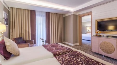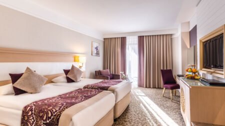 Winter Wanneer je tussen 01-11-2025 en 31-03-2026 in deze accommodatie verblijft, is onderstaande informatie van toepassing. * Ligging * In het centrum van Kumkoy * Privéstrand op circa 250 meter * Zandstrand * Ligbedden * Parasol * Dichtstbijzijnde winkel op circa 300 meter * Dichtstbijzijnde restaurant op circa 300 meter * Dichtstbijzijnde bar op circa 300 meter * Side op circa 5 kilometer * Manavgat op circa 12 kilometer * Bushalte op circa 50 meter * Algemeen & faciliteiten * 1 gebouw * Maximaal 10 verdiepingen * 334 kamers * Receptie * 24 uur per dag * Lobby * 3 liften * Bagageruimte * Wifi in alle openbare ruimtes * Meerdere winkels * Minimarkt * Wasservice tegen betaling * Doktersservice tegen betaling * Tuin * Privé parkeergelegenheid * Restaurants & bars * Buffetrestaurant * 3 à-la-carterestaurants (vooraf reserveren) tegen bijbetaling * Italiaans restaurant * Turks restaurant * Visrestaurant * Restaurant * Restaurant met verschillende specialiteiten * Gesloten in het winterseizoen * 5 drinkgelegenheden * 2 bars * 2 beachbars * Lobbybar * Activiteiten & ontspanning * Basketbal * Beachvolleybal * tussen ca. april en oktober * Biljart tegen betaling * Boccia * Darts * Fitness * Midgetgolf * Tafeltennis * Tennis * Voetbal * Volleybal * Watersporten tegen betaling * Spa Center * Sauna * Hamam behandelingen tegen betaling * Bubbelbad binnen tegen betaling * Massages tegen betaling * Schoonheidsbehandelingen tegen betaling * Gameroom * Animatie voor volwassenen * tussen ca. april en oktober * Shows * Meerdere keren per week * Livemuziek * Meerdere keren per week * Zwembaden * 2 buitenzwembaden * Gesloten in het winterseizoen * Eén van deze zwembaden heeft 3 glijbanen * De glijbanen hebben verschillende openingsperiodes * Buitenzwembad voor kinderen * Gesloten in het winterseizoen * Binnenzwembad * Gesloten in het zomerseizoen * Verwarmd tussen ca. zaterdag 1 november 2025 en dinsdag 31 maart 2026 * Binnenzwembad voor kinderen * Gesloten in het zomerseizoen * Zonneterras * Ligbedden * Parasol * Badhanddoekenservice gratis (wisselen tegen betaling) * Kinderfaciliteiten * Mini club (4-12 jaar) * 6 keer per week * Minidisco * Buitenspeeltuin * Babybedje als preferentie toe te voegen in het boekingsformulier * Verzorging * Ultra All Inclusive * Ontbijt in buffetvorm (07.30-10.00 uur) * Laat ontbijt in buffetvorm (10.00-11.00 uur) * Lunch in buffetvorm (12.30-14.00 uur) * Diner in buffetvorm (18.00-20.00 uur) * Snacks (15.30-16.30 uur) * Koffie, thee & koekjes (15.30-16.30 uur) * Middernachtsnack (00.00-07.00 uur) * Selectie geïmporteerde drankjes * Selectie lokale (non-)alcoholische drankjes (24 uur per dag) * Tegen betaling: dineren in alle à-la-carterestaurants en drankjes in flessenHotelkamers * 2-persoonskamer Voordeel DE * Speciaal tarief * Locatie kan afwijken ten opzichte van andere kamertypes * Uitzicht kan afwijken ten opzichte van andere kamertypes * Faciliteiten kunnen afwijken ten opzichte van andere kamertypes * Oppervlakte tussen 20 en 24 m² * Airconditioning * Kluisje * Televisie * Telefoon tegen betaling * Eet- en drinkfaciliteiten * Koffie- en theefaciliteiten * Minibar * Badkamer douche, toilet, föhn en badslippers * Wifi * Frans balkon * 2-persoonskamer Standaard DZ * Oppervlakte tussen 22 en 28 m² * Airconditioning * Kluisje * Televisie * Telefoon tegen betaling * Eet- en drinkfaciliteiten * Koffie- en theefaciliteiten * Minibar * Badkamer douche, toilet, föhn en badslippers * Wifi * Balkon of terras (zitje) * 2-persoonskamer Comfort Zwembadzicht DJP * Oppervlakte tussen 28 en 35 m² * Zwembadzicht * Airconditioning * Kluisje * Televisie * Telefoon tegen betaling * Eet- en drinkfaciliteiten * Koffie- en theefaciliteiten * Minibar * Badkamer douche, toilet, föhn, badjassen en badslippers * Wifi * Balkon of terras (zitje) * Fles wijn bij aankomst * Familiekamer Suite FU1 * Oppervlakte tussen 55 en 60 m² * 2 slaapkamers * Airconditioning * Kluisje * Televisie * Telefoon tegen betaling * Eet- en drinkfaciliteiten * Koffie- en theefaciliteiten * Minibar * Badkamer douche, toilet, föhn en badslippers * Wifi * Balkon of terras (zitje) * Familiekamer Suite FU2 * Oppervlakte tussen 55 en 60 m² * 2 slaapkamers * Airconditioning * Kluisje * Televisie * Telefoon tegen betaling * Eet- en drinkfaciliteiten * Koffie- en theefaciliteiten * Minibar * Badkamer douche, toilet, föhn en badslippers * Wifi * Balkon of terras (zitje) * Familiekamer Duplex FF1 * Oppervlakte tussen 55 en 60 m² * In duplexstijl * 2 slaapkamers * Eén slaapkamer * Eén slaapkamer * Airconditioning * Kluisje * Televisie * Telefoon tegen betaling * Eet- en drinkfaciliteiten * Koffie- en theefaciliteiten * Minibar * 2 badkamers * 2 badkamers met douche, toilet, föhn en badslippers * Wifi * Balkon of terras (zitje) * Familiekamer Duplex FF2 * Oppervlakte tussen 55 en 60 m² * In duplexstijl * 2 slaapkamers * Eén slaapkamer * Eén slaapkamer * Airconditioning * Kluisje * Televisie * Telefoon tegen betaling * Eet- en drinkfaciliteiten * Koffie- en theefaciliteiten * Minibar * 2 badkamers * 2 badkamers met douche, toilet, föhn en badslippers * Wifi * Balkon of terras (zitje) * Child Friendly Room CF