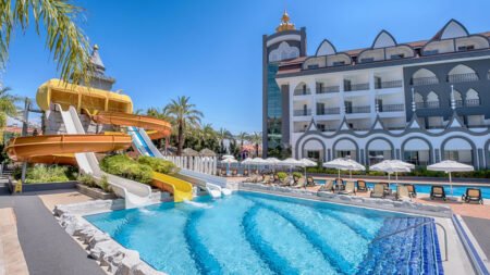 Zomer Wanneer je tussen 28-03-2026 en 31-10-2026 in deze accommodatie verblijft, is onderstaande informatie van toepassing. * Ligging * In het centrum van Evrenseki * Privéstrand op circa 400 meter * Zandstrand * Ligbedden met matrasjes * Parasol * Dichtstbijzijnde winkel op circa 100 meter * Dichtstbijzijnde restaurant op circa 100 meter * Dichtstbijzijnde bar op circa 100 meter * Side op circa 6 kilometer * Manavgat op circa 12 kilometer * Shuttleservice naar het strand * Op gezette tijden beschikbaar * Bushalte op circa 50 meter * Algemeen & faciliteiten * 5 gebouwen * Maximaal 4 verdiepingen * 325 kamers * Receptie * 24 uur per dag * Lobby * Meerdere liften * Lift in elk gebouw * Bagageruimte * Wifi in alle openbare ruimtes * 2 winkels * Minimarkt * Wasservice tegen betaling * Doktersservice tegen betaling * Tuin * Openbare parkeergelegenheid * Privé parkeergelegenheid * Restaurants & bars * Buffetrestaurant * À-la-carterestaurant (vooraf reserveren) tegen bijbetaling * Restaurant met internationale specialiteiten * 2 snackbars * Patisserie * Roomservice tegen betaling * Meerdere drinkgelegenheden * Bar * Beachbar * Lobbybar * Poolbar * Activiteiten & ontspanning * Aerobics * Beachvolleybal * Boccia * Darts * Fitness * Tafeltennis * Voetbal * Watersporten tegen betaling * Spa Center * Sauna * Hamam behandelingen tegen betaling * Bubbelbad binnen * Massages tegen betaling * Schoonheidsbehandelingen tegen betaling * Discotheek * Animatie voor volwassenen * 6 keer per week * Shows * 6 keer per week * Livemuziek * 6 keer per week * Zwembaden * 4 buitenzwembaden * Eén van deze zwembaden heeft 4 glijbanen * De glijbanen hebben verschillende openingsperiodes * Buitenzwembad voor kinderen * Binnenzwembad * Verwarmd * Zonneterras * Ligbedden met matrasjes * Parasol * Badhanddoekenservice * Kinderfaciliteiten * Mini club (4-7 jaar) * 6 keer per week * Midiclub (8-12 jaar) * 6 keer per week * Minidisco * 6 keer per week * Buitenspeeltuin * Babybedje als preferentie toe te voegen in het boekingsformulier * Verzorging * Ultra All Inclusive * Ontbijt in buffetvorm (07.00-11.00 uur) * Lunch in buffetvorm (12.30-14.00 uur) * Diner in buffetvorm (19.00-21.30 uur) * Snacks (12.30-16.00 uur) * Koffie, thee & koekjes (11.00-17.00 uur) * IJs (12.00-17.00 uur en 19.00-21.30 uur) * Middernachtsnack (23.00-06.00 uur) * Selectie geïmporteerde drankjes * Selectie lokale (non-)alcoholische drankjes (24 uur per dag) * Tegen betaling: dineren in het à-la-carterestaurant, alle consumpties in de discotheek, overige geïmporteerde drankjes en roomserviceHotelkamers * 2-persoonskamer Voordeel DE * Speciaal tarief * Locatie, formaat, uitzicht en/of faciliteiten kunnen afwijken ten opzichte van andere kamertypes * Airconditioning * Kluisje * Televisie * Telefoon tegen betaling * Eet- en drinkfaciliteiten * Koffie- en theefaciliteiten * Minibar * Badkamer douche, toilet, föhn, badjassen en badslippers * Wifi * Balkon of terras (zitje) * 2-persoonskamer Standaard Landzicht DZL * Oppervlakte van circa 28 m² * Landzicht * Airconditioning * Kluisje * Televisie * Telefoon tegen betaling * Eet- en drinkfaciliteiten * Koffie- en theefaciliteiten * Minibar * Badkamer douche, toilet, föhn, badjassen en badslippers * Wifi * Balkon of terras (zitje) * 2-persoonskamer Standaard Zwembadzicht DZP * Oppervlakte van circa 28 m² * Zwembadzicht * Airconditioning * Kluisje * Televisie * Telefoon tegen betaling * Eet- en drinkfaciliteiten * Koffie- en theefaciliteiten * Minibar * Badkamer douche, toilet, föhn, badjassen en badslippers * Wifi * Balkon of terras (zitje) * 2-persoonskamer Large Landzicht DLL * Oppervlakte van circa 32 m² * Landzicht * Airconditioning * Kluisje * Televisie * Telefoon tegen betaling * Eet- en drinkfaciliteiten * Koffie- en theefaciliteiten * Minibar * Badkamer douche, toilet, föhn, badjassen en badslippers * Wifi * Balkon of terras (zitje) * 2-persoonskamer Large Zwembadzicht DLP * Oppervlakte van circa 32 m² * Zwembadzicht * Airconditioning * Kluisje * Televisie * Telefoon tegen betaling * Eet- en drinkfaciliteiten * Koffie- en theefaciliteiten * Minibar * Badkamer douche, toilet, föhn, badjassen en badslippers * Wifi * Balkon of terras (zitje) * Familiekamer Landzicht (2+2) F1L * Oppervlakte van circa 44 m² * Landzicht * 2 slaapkamers * Airconditioning * Kluisje * Televisie * Telefoon tegen betaling * Eet- en drinkfaciliteiten * Koffie- en theefaciliteiten * Minibar * Badkamer bad of douche, toilet, föhn, badjassen (op aanvraag) en badslippers * Wifi * Balkon of terras (zitje) * Familiekamer Zwembadzicht (2+2) F2P * Oppervlakte van circa 44 m² * Zwembadzicht * 2 slaapkamers * Airconditioning * Kluisje * Televisie * Telefoon tegen betaling * Eet- en drinkfaciliteiten * Koffie- en theefaciliteiten * Minibar * Badkamer bad of douche, toilet, föhn, badjassen (op aanvraag) en badslippers * Wifi * Balkon of terras (zitje) * Familiekamer Standaard Landzicht (2+3) FZ5 * Oppervlakte van circa 44 m² * Landzicht * 2 slaapkamers * Airconditioning * Kluisje * Televisie * Telefoon tegen betaling * Eet- en drinkfaciliteiten * Koffie- en theefaciliteiten * Minibar * Badkamer bad of douche, toilet, föhn, badjassen en badslippers * Wifi * Balkon of terras (zitje) * Familiekamer Standaard Landzicht (3+2) FZ7 * Oppervlakte van circa 44 m² * Landzicht * 2 slaapkamers * Airconditioning * Kluisje * Televisie * Telefoon tegen betaling * Eet- en drinkfaciliteiten * Koffie- en theefaciliteiten * Minibar * Badkamer bad of douche, toilet, föhn, badjassen en badslippers * Wifi * Balkon of terras (zitje) * Familiekamer Standaard Landzicht (4+0/4+1) FZ1 * Oppervlakte van circa 44 m² * Landzicht * 2 slaapkamers * Airconditioning * Kluisje * Televisie * Telefoon tegen betaling * Eet- en drinkfaciliteiten * Koffie- en theefaciliteiten * Minibar * Badkamer bad of douche, toilet, föhn, badjassen en badslippers * Wifi * Balkon of terras (zitje) * Familiekamer Standaard Landzicht (5+0) FZ2 * Oppervlakte van circa 44 m² 