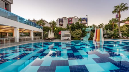 Zomer Wanneer je tussen 01-05-2026 en 31-10-2026 in deze accommodatie verblijft, is onderstaande informatie van toepassing. * Ligging * Gelegen aan het privéstrand * Openbaar strand op circa 50 meter * Centrum van Alanya op circa 5 kilometer * Dichtstbijzijnde winkel op circa 100 meter * Dichtstbijzijnde restaurant op circa 2 kilometer * Dichtstbijzijnde bar op circa 2 kilometer * Bushalte op circa 10 meter * Algemeen & faciliteiten * Adults Only (minimumleeftijd 16 jaar) * 1 gebouw * Maximaal 6 verdiepingen * 120 kamers * Receptie * 24 uur per dag * Lobby * 2 liften * Bagageruimte * Wifi in één van de openbare ruimtes * Meerdere winkels * Minimarkt * Wasservice tegen betaling * Doktersservice tegen betaling * Tuin * Privé parkeergelegenheid * Restaurants & bars * Buffetrestaurant * À-la-carterestaurant (vooraf reserveren) * Snackbar * Roomservice tegen betaling * 3 drinkgelegenheden * 3 bars * Activiteiten & ontspanning * Aerobics * Biljart tegen betaling * Boccia * Fitness * Watersporten tegen betaling * Yoga * Spa Center * Binnenzwembad * Sauna tegen betaling * Turks stoombad tegen betaling * Bubbelbad binnen tegen betaling * Massages tegen betaling * Schoonheidsbehandelingen tegen betaling * Animatie * Zwembaden * 2 buitenzwembaden * Eén van deze zwembaden heeft 2 glijbanen * Meerdere zonneterrassen * Badhanddoekenservice * Verzorging * All Inclusive * Ontbijt in buffetvorm (07.30-09.30 uur) * Laat ontbijt in buffetvorm (09.30-10.30 uur) * Lunch in buffetvorm (12.30-14.00 uur) * Diner in buffetvorm (19.30-21.00 uur) * Snacks (12.00-17.00 uur) * Koffie, thee & koekjes (10.00-17.00 uur) * Middernachtsnack (00.00-01.00 uur) * Selectie geïmporteerde alcoholische drankjes (10.00-00.00 uur) * Selectie lokale (non-)alcoholische drankjes (10.00-00.00 uur) * Tegen betaling: dineren in het à-la-carterestaurant, import drankjes en roomserviceHotelkamers * 2-persoonskamer Standaard Landzicht DZL * Oppervlakte van circa 28 m² * Landzicht * Airconditioning * Kluisje tegen betaling * Televisie * Telefoon tegen betaling * Eet- en drinkfaciliteiten * Minibar tegen betaling * Badkamer douche, toilet, föhn, badjassen en badslippers * Wifi * Balkon of terras (zitje) * 2-persoonskamer Standaard Zijzeezicht DZI * Oppervlakte circa 28 m² * Zijzeezicht * Airconditioning * Kluisje tegen betaling * Televisie * Telefoon tegen betaling * Eet- en drinkfaciliteiten * Minibar tegen betaling * Badkamer douche, toilet, föhn, badjassen en badslippers * Wifi * Balkon of terras (zitje) * 2-persoonskamer Superior Zeezicht DSM * 2-persoonskamer Premium Terras DRX * Oppervlakte circa 36 m² * Airconditioning * Kluisje tegen betaling * Televisie * Telefoon tegen betaling * Eet- en drinkfaciliteiten * Minibar * Badkamer douche, toilet, föhn, badjassen en badslippers * Wifi * Balkon of terras (ligstoelen)